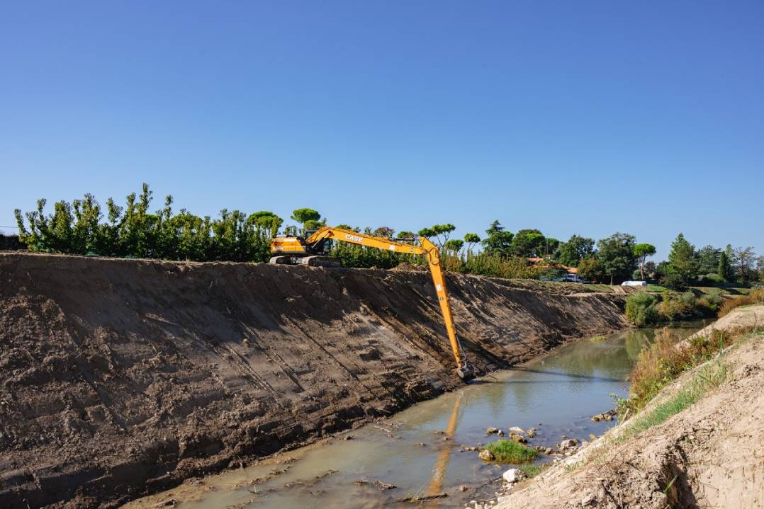 Il CX240E long reach è oggi impiegato lungo il fiume Lamone, dove si occupa di ripulire vegetazione e detriti, modellare gli argini e mantenere la sicurezza idraulica dei corsi d'acqua.