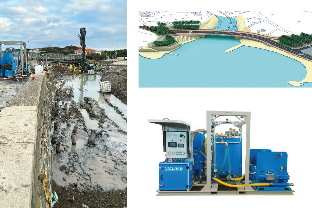 Protagonisti del cantiere di Livorno la perforatrice C6 XP-2 Casagrande e il gruppo per iniezioni a funzionamento elettroidraulico Clivio.