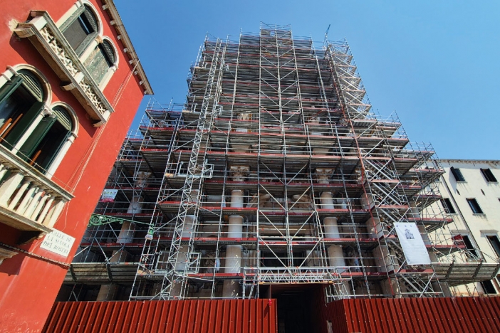 Diminuito il peso della struttura, aumentata la portata, un unico piano di calpestio privo di inciampi e appoggi a terra minimizzati per ridurre le interferenze alla fruizione da parte del pubblico. Sono queste alcune delle caratteristiche del sistema provvisionale multidirezionale Layher, installato da Metalmontaggi, per consentire a Lithos il restauro della chiesa di Santa Maria Assunta, meglio conosciuta come chiesa dei Gesuiti, vero gioiello barocco nel cuore di Venezia