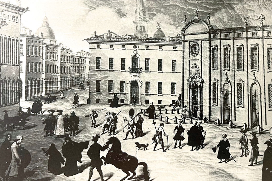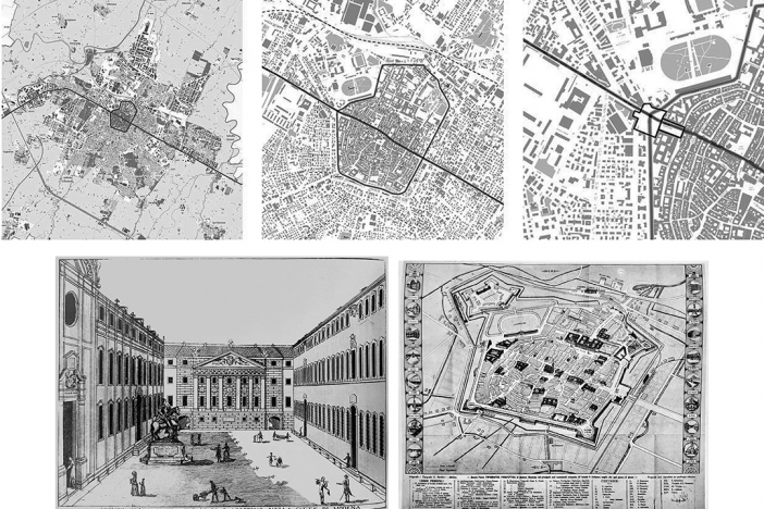 La svolta nella costruzione del piazzale avvenne con Francesco III d'Este, il quale, dopo essersi destreggiato nelle questioni dinastiche europee e aver assunto il governo della Lombardia fissando a lungo la propria dimora a Milano, promosse un cospicuo scambio culturale, favorendo la diffusione nelle terre estensi dei principi illuministici appresi in Lombardia. Egli applicò principi di prevenzione e accoglienza sociosanitaria, in cui la medicina non è più al servizio del singolo ma della comunità. Dal campo delle prescrizioni religiose e delle regole di vita si passò a un percorso scientifico utile e necessario alla popolazione. Già con Bernardino Ramazzini tali principi si affermarono oltre i confini del ducato, fino alla prestigiosa Università di Padova; a Ramazzini è oggi riconosciuto l'attributo di fondatore e padre della medicina del lavoro. Regnante per quarantatré anni, sovrano illuminato, Francesco III regolò l'urbanistica cittadina e introdusse la numerazione delle case. La sua adesione agli ideali illuministici ebbe ricadute positive sull'economia: l'incameramento dei beni ecclesiastici e il rinnovo urbanistico generarono sviluppo e occupazione. In soli diciotto anni si realizzò un largo solenne, ordinato sulla simmetria di due fabbriche. Il sito, oltre alla funzione difensiva, assunse quella celebrativa e riorganizzò l'assistenza. La piazza non possiede i requisiti, né amministrativi né commerciali, dell'agorà o del foro: essa si adegua ad accogliere funzioni assistenziali e sanitarie. Con l'avvento di Francesco III, la svolta nell'evoluzione urbana dell'area trasformò un luogo né nobile né agevole in un intervento urbano neoclassico, elegante e composto. Premesso che Modena era caratterizzata da una fitta rete di canali, che ne vincolavano la morfologia e - essendo a cielo aperto - la rendevano insalubre, a metà Settecento il duca, seguendo il pensiero del suo educatore Ludovico Antonio Muratori, conciliò in questa piazza la funzione di rappresentanza - necessaria alla capitale del Ducato d'Este e porta d'accesso alla città per delegazioni politiche, diplomatiche e militari provenienti da Milano - con la funzione assistenziale dell'Opera Pia Generale dei Poveri a sud e quella ospedaliera a nord (Figura 5).