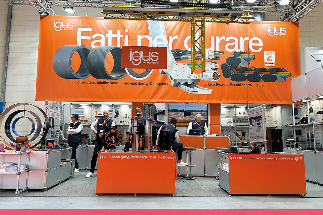 In occasione della kermesse piacentina, igus Italia, filiale italiana di igus SE & Co. KG specializzata in motion plastics, ha presentato la propria offerta dedicata a costruttori, integratori e utilizzatori di impianti che operano in ambienti difficili e richiedono componenti pronti all'uso, affidabili, resistenti e capaci di ridurre i costi di gestione e i fermi macchina