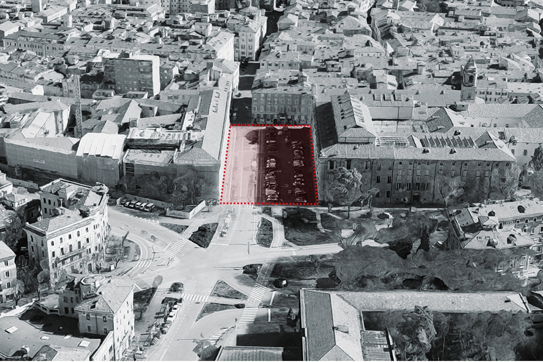In altre parole, la lunga durata non consegna soluzioni precostituite, ma precedenti da cui derivare nuovi presupposti operativi. Su tale base si colloca la scelta di fondo: riconoscere la piazza come stanza urbana, restituendole una soglia capace di ricomporre misura e gerarchie, come nell'assetto anteriore alla demolizione della Porta; oppure assumere la piazza come spazio apertamente permeabile, con le conseguenti implicazioni in termini di attraversamento, profondità prospettica e relazione con largo Aldo Moro. La prima ipotesi rimette al centro la nozione di limite e di sequenza, la seconda privilegia continuità e apertura; ma entrambe richiedono una chiara definizione dei margini, della scala del vuoto e dei regimi d'uso di cui l'identità morfologica è inseparabile dalle funzioni. Oggi il Palazzo dei Musei esercita una riconoscibile vocazione civico-culturale, mentre l'ex ospedale, dismesso, apre lo scenario reale di nuove funzioni pubbliche. Occorre quindi stabilire se orientare il sistema verso un dialogo strutturato tra i due fronti - con una regia unitaria dell'offerta civica e culturale - oppure verso una relazione per differenza, che mantenga identità distinte entro una cornice coordinata. La decisione ha effetti diretti sulla configurazione dello spazio: intensità e temporalità d'uso, continuità dei percorsi pedonali, modalità di attraversamento, compatibilità della sosta e capacità di carico in occasione di eventi. In questo senso, la storia del luogo - che ha saputo attivare un polo di servizio pubblico a scala cittadina - indica un criterio: la piazza funziona quando i caratteri distintivi sono messi in coerenza, e quando il rapporto con i bordi, in particolare verso largo Aldo Moro, è esplicitato e non lasciato indeterminato. Ne discende così un orizzonte di lavoro verificabile. Solo entro questa cornice è possibile orientare scelte coerenti con l'identità storica del luogo e con le esigenze del centro urbano nella sua chiave contemporanea. u