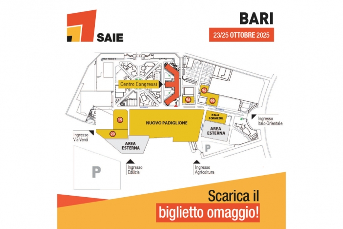 SAIE Bari 2025 (23/25 ottobre, Fiera del Levante - Bari) è l'opportunità da non mancare: scarica il biglietto omaggio per partecipare.