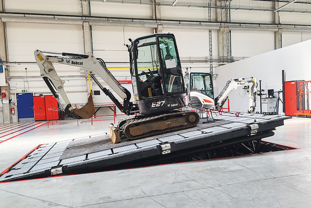 Bobcat però, quando immette una nuova macchina sul mercato, non garantisce solo la sua elevata qualità costruttiva, ma ne convalida anche le sue caratteristiche prestazionali e lo fa attraverso tutta una serie di prove e controlli rigidissimi che vengono svolti sempre all'interno dell'Innovation Center. Di grande effetto è sicuramente la tavola inclinabile: i test di stabilità condotti su questa tavola garantiscono l'effettiva possibilità di utilizzare le macchine in pendenza, tanto che ogni nuovo prodotto deve superare questo test di sicurezza, in cui la tavola viene inclinata a un angolo massimo di 45 gradi in tutte le direzioni. Mentre per misurare forza di strappo e sollevamento viene utilizzata una fossa profonda 7 metri alla cui base è collocato un argano elettrico da 10 ton. Miniescavatori e pale compatte vengono testate in tutte le loro configurazioni possibili, quindi con diversi bracci, lame e contrappesi.