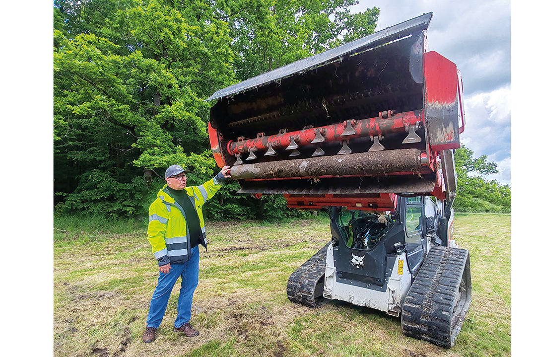 Freddy Remory, Bobcat Senior Product Trainer, mentre mostra la trinciatutto a martelli