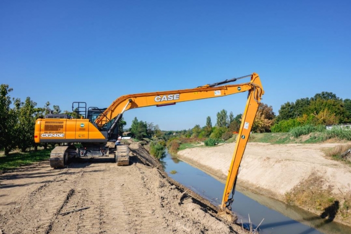 Il CX240E long reach è oggi impiegato lungo il fiume Lamone, dove si occupa di ripulire vegetazione e detriti, modellare gli argini e mantenere la sicurezza idraulica dei corsi d'acqua.