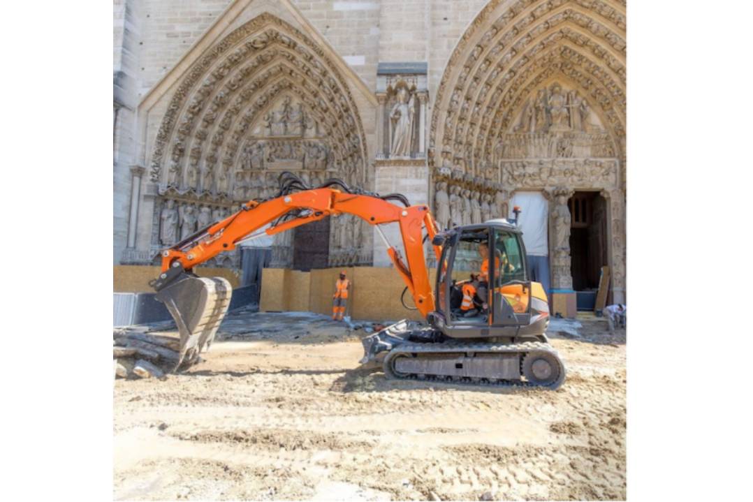 Mecalac ha l'onore di avere un suo escavatore cingolato 10MCR in un ruolo chiave nell'eccezionale cantiere di ricostruzione di Notre-Dame a Parigi. Questo progetto, che ha una portata simbolica e culturale incomparabile, rappresenta una vera sfida tecnica e logistica. Il rifacimento della pavimentazione del sagrato richiede una precisione millimetrica: la copertura originaria è stata rimossa su circa 1.000 m² per l'esecuzione dei lavori di sbancamento e la successiva posa di pietra di Comblanchien, un materiale calcareo scelto per valorizzare questo straordinario patrimonio.
