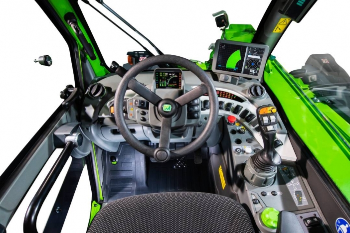 Tra le caratteristiche distintive troviamo inoltre la cabina sospesa idropneumatica Merlo, che garantisce un comfort straordinario anche nelle lunghe ore di lavoro su terreni accidentati. A questo, in cabina, si aggiunge il display digitale ASCS, che include un sistema di pesatura in tempo reale per monitorare il peso del carico sollevato, migliorando la sicurezza e l'efficienza operativa.