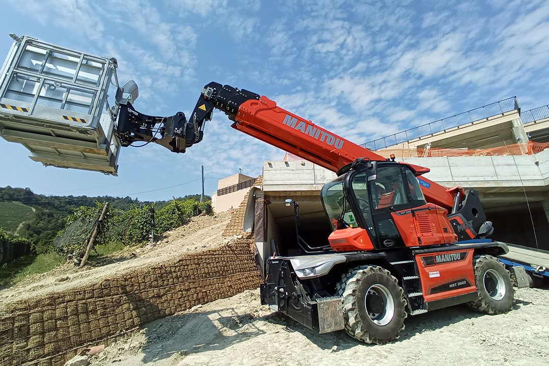 Restando in tema di prestazioni elevate, l'impresa edile si è affidata a Manitou, e nello specifico di questo cantiere vede l'ausilio del sollevatore telescopico rotativo di ultima generazione Vision+, l'MRT 2660.