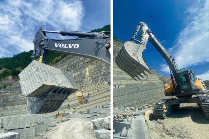 Questi dettagli permettono di assaporare e comprendere il lavoro che viene svolto all'interno di una cava di pietra serena e ci danno la misura dell'importanza di una scelta ben ponderata, di puntare cioè su macchine tailor made. Ed è per questo motivo che da anni Calamini Urbano Srl punta sulla qualità sartoriale di Volvo CE per il suo parco macchine.