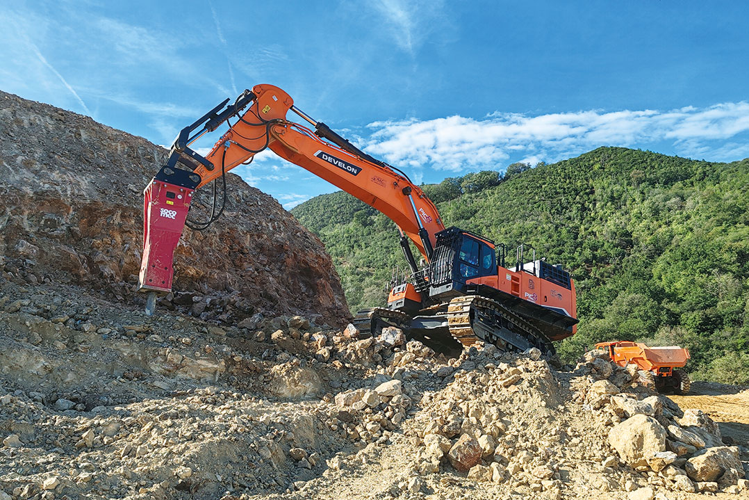Il DX800LC-7 della M.A.C. monta anche una protezione cabina completa con fanali a LED aggiuntivi ed è dotato di un sistema di lubrificazione automatica che solleva l'operatore da un'operazione lunga e comunque delicata se effettuata in macchine del genere. Considerando il lavoro per il quale è stato acquistato, come precisa Orlando Ceravolo: "appena sotto lo strato di cappellaccio, troviamo subito la roccia nel sito di Vado Ligure, una roccia particolarmente dura, per affrontare la quale abbiamo equipaggiato il DX800LC-7 con un martellone demolitore. La macchina lavora dalle 8 alle 10 ore al giorno e collabora alla movimentazione di 2.000 mc di materiale al giorno. Quello che più mi ha sorpreso - pone in luce Ceravolo - sono state la velocità e la reattività della macchina. Conosco bene le mmt, il nostro parco macchine è particolarmente nutrito e diversi sono i brand che lo compongono, ma devo dire che Develon ci ha sempre dato ottime soddisfazioni. Anzi, questo 80 ton ha un'idraulica eccellente e si sta dimostrando molto più reattivo di macchine da 50 ton che abbiamo avuto. In più, l'assistenza e la tempestività offerta da Pic8 - evidenzia - non hanno paragoni e ci fanno stare tranquilli sotto tanti punti di vista, perché quando si devono eseguire lavori importanti come questo o si deve rispondere a grandi Committenze, risolvere nel più breve tempo possibile l'eventuale fermo può cambiare l'iter stesso di un lavoro".