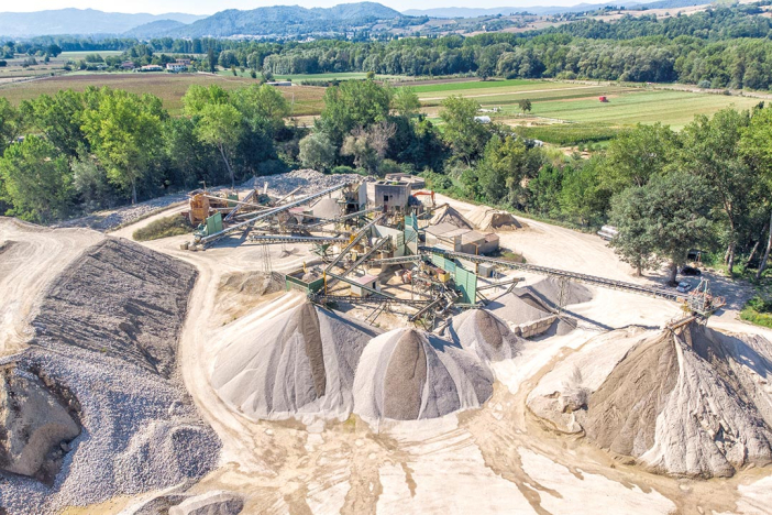 L'impianto di San Paterniano, oggetto di questo articolo, produce, attraverso un complesso processo di frantumazione, selezione e lavaggio, sabbie e graniglie per la produzione di calcestruzzi e conglomerati.