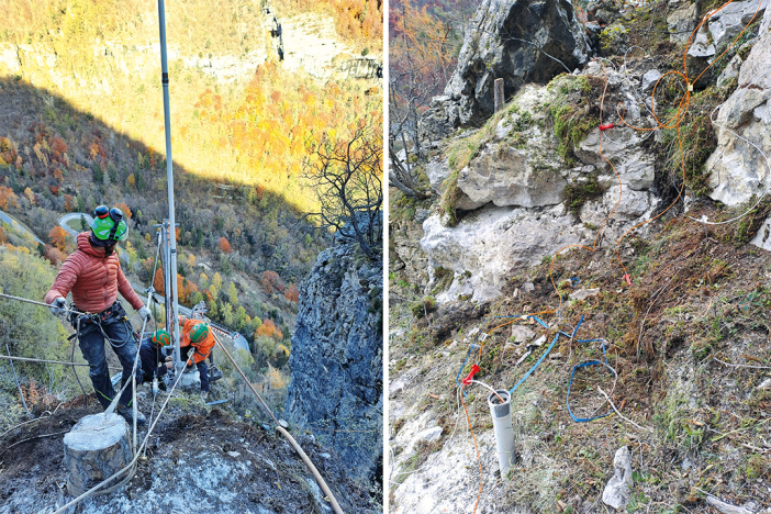 L'intervento di demolizione sopra la strada statale 350 si presenta sicuramente come uno degli interventi con esplosivo eseguiti in fune più complessi e che ha interessato volumi più grandi di roccia degli ultimi dieci anni in Trentino e che al contempo ha visto dei tempi di realizzazione straordinariamente contenuti. I primi sopralluoghi di inquadramento dell'area sono avvenuti il 7 novembre per consentire l'inizio delle fasi di perforazione la domenica 12 novembre dopo l'apprestamento del cantiere e del progetto esecutivo della volata.