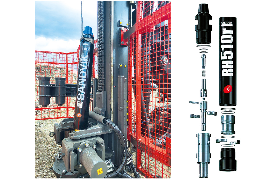 Come ci spiega sempre Toscano: “Si tratta di martelli ad alta frequenza, molto veloci nella penetrazione e in grado di garantire il massimo dell’affidabilità. Con un peso di 173 kg, diametro esterno 181 mm e una lunghezza del martello di 1219 mm, l’RH510r è un vero e proprio martello da produzione che consuma meno aria di altri martelli pari misura, ossia 23.5 m3/min a 24 bar, è dotato di una frequenza e quindi di una velocità di perforazione molto alta, essendo privo di foot valve, tanto che il trasferimento di energia tra pistone e punta riesce ad essere il più efficiente possibile: l’energia viene trasmessa al terreno nel miglior modo possibile così da assicurare una perforazione ottimale. In più – conclude Toscano – la r che ne caratterizza la nomenclatura sta ad indicare la sua reversibilità, intesa come possibilità di rigirare la camicia per renderne, nel tempo, uniforme l’usura data dal pistone che scorre al suo interno e allungarne quindi la vita utile”.