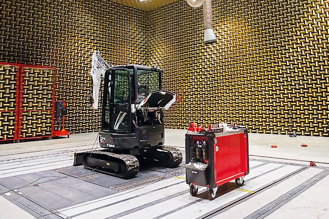 Bobcat però, quando immette una nuova macchina sul mercato, non garantisce solo la sua elevata qualità costruttiva, ma ne convalida anche le sue caratteristiche prestazionali e lo fa attraverso tutta una serie di prove e controlli rigidissimi che vengono svolti sempre all'interno dell'Innovation Center. Di grande effetto è sicuramente la tavola inclinabile: i test di stabilità condotti su questa tavola garantiscono l'effettiva possibilità di utilizzare le macchine in pendenza, tanto che ogni nuovo prodotto deve superare questo test di sicurezza, in cui la tavola viene inclinata a un angolo massimo di 45 gradi in tutte le direzioni. Mentre per misurare forza di strappo e sollevamento viene utilizzata una fossa profonda 7 metri alla cui base è collocato un argano elettrico da 10 ton. Miniescavatori e pale compatte vengono testate in tutte le loro configurazioni possibili, quindi con diversi bracci, lame e contrappesi.