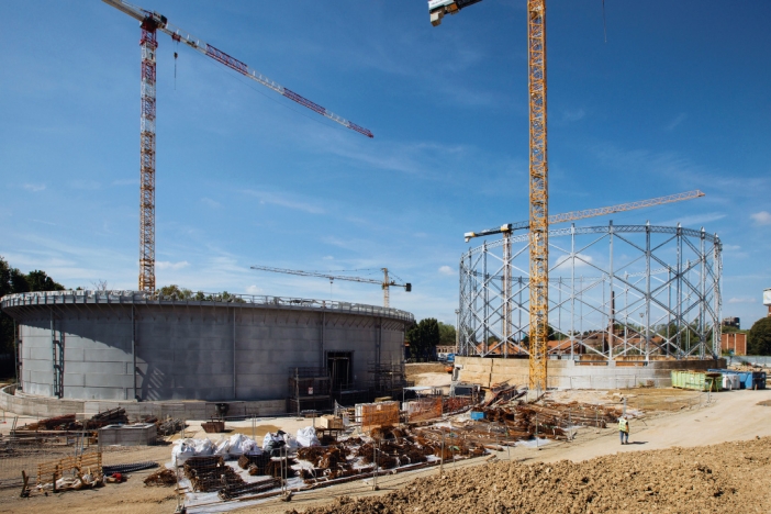Il progetto riguarda la riqualificazione di due storici gasometri situati a Milano, costruiti nei primi del '900 per lo stoccaggio del gas. Uno dei due verrà parzialmente smontato, restaurato e rimontato, mentre l'altro verrà restaurato in opera.