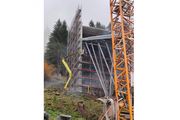 La società specializzata nel noleggio di mezzi da lavoro aereo per la cantieristica e l'industria è stata protagonista, con la fornitura a noleggio di una piattaforma Lightlift 20.10 di HINOWA, dell'intervento di montaggio delle strutture in carpenteria metallica dei "nuovi" scivoli dello Stadio del Salto di Predazzo realizzato dall'azienda bresciana Mo.ca.m..