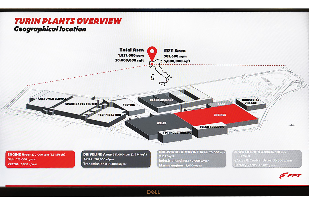 Più di 8.000 persone in 10 stabilimenti e 10 Centri di Ricerca & Sviluppo in tutto il mondo, una rete globale di vendita e un Customer Service attivo in circa 100 Paesi per supportare tutti i clienti del Brand. Sono questi solo una parte dei numeri più esemplificativi che caratterizzano FPT. D'altronde la Casa di Torino vanta una gamma di prodotti estremamente ampia che include sei famiglie di motori con una potenza da 30 a oltre 900 cavalli, trasmissioni con coppia fino a 500 Nm, assali anteriori e posteriori da 2,45 a 32 tonnellate, senza dimenticare la più completa gamma oggi presente sul mercato di motori a gas naturale per applicazioni industriali, con una potenza variabile da 50 a 520 cavalli e senza dimenticare, altresì, la divisione ePowertrain dedicata ai sistemi di propulsione elettrici, trasmissioni elettriche, pacchi batteria e sistemi di gestione delle batterie.