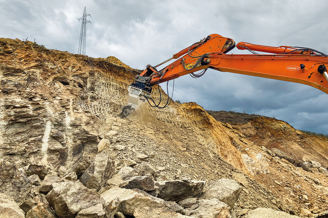 Per questa ragione alla ditta occorreva un'attrezzatura che non si limitasse a frantumare la roccia ma che garantisse anche un alto grado di finitura e precisione, funzionale alla corretta installazione delle geomembrane. La gamma TF, a differenza dei canonici sistemi a percussione, unisce alla grande potenza idraulica, generata dai motori in presa diretta con i tamburi, anche la rottura selettiva e controllata dell'ammasso roccioso, assicurando la stabilità della parete e producendo un materiale frantumato facilmente trasportabile e che non necessita di un'ulteriore riduzione volumetrica da parte di una seconda attrezzatura o macchina operatrice. Inoltre, la particolare forma del telaio si caratterizza per una distanza ridotta tra i due tamburi, a tutto beneficio della larghezza totale di lavoro. Le guarnizioni meccaniche garantiscono la massima tenuta a polvere e altri agenti esterni, permettendo all'attrezzatura di lavorare completamente immersi nel terreno, come spesso accade in questo tipo di cantieri. Il modello Simex TF 2100, con un peso operativo di 2380 kg, esprime una potenza nominale di 120 kW ed una forza di taglio al dente pari a 71 kN.
