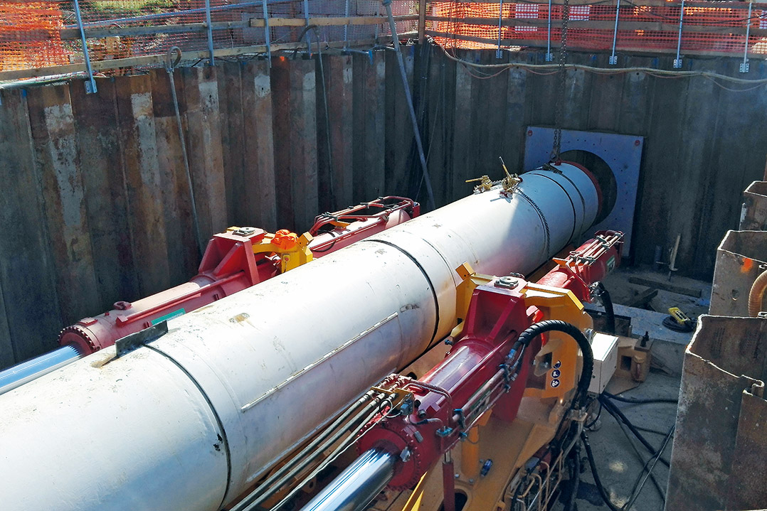 Il massimo valore di spinta esercitabile dai martinetti, oltre che dipendere dalla potenza del Pipe Thruster garantito dalla sezione complessiva dei pistoni idraulici, è in funzione anche delle caratteristiche di resistenza della tubazione da posare e del dimensionamento del basamento di ancoraggio del Pipe Thruster stesso.