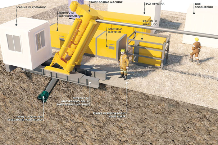 Alla scoperta della metodologia del Raise Borer, tecnica che permette di affrontare situazioni morfologiche particolari, quali pareti rocciose e/o scarpate molto ripide, che si ergono ad ostacolo lungo un possibile tracciato, progettando pozzi inclinati di opportuna geometria